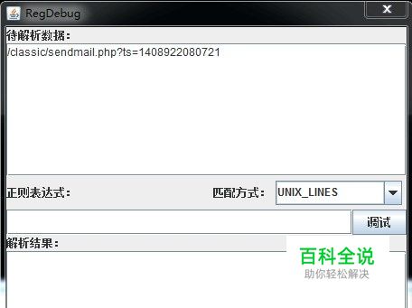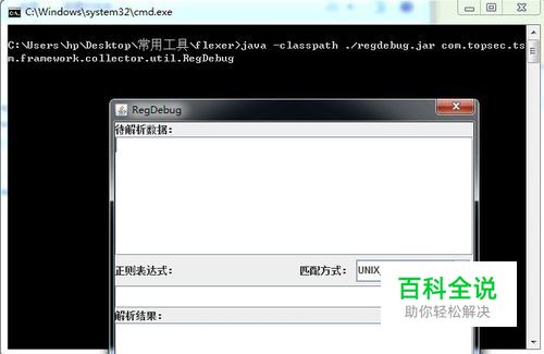 下载个正则表达式的调试工具regdebug,使用很简单,直接双击regdebug的windows批处理文件,就自动弹出两个框,一个为java运行的框,一个为调试正则表达式的框。