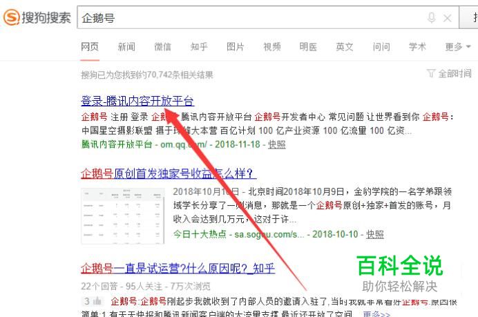进入之后,搜索“企鹅号”,点击并进入,如图所示。