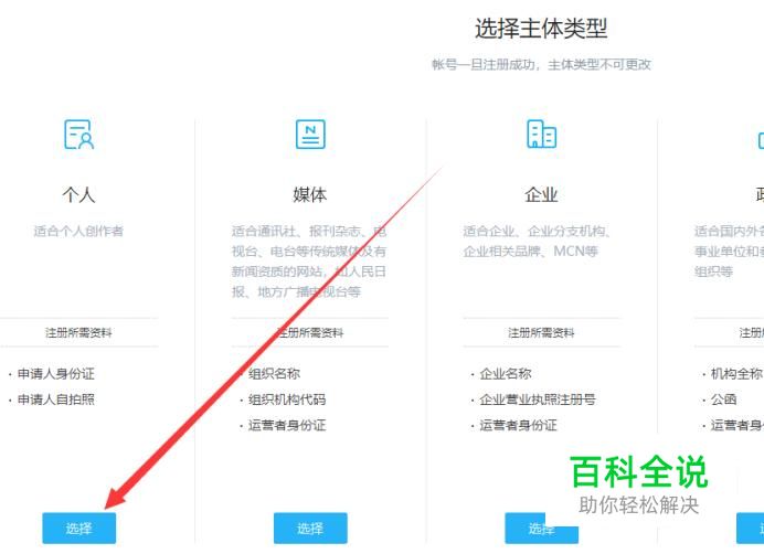 进入之后,选择主体类型,进入下一页面,如图所示。