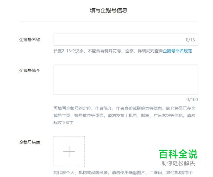 进入之后,填写企鹅号注册信息将其提交即可,如图所示。