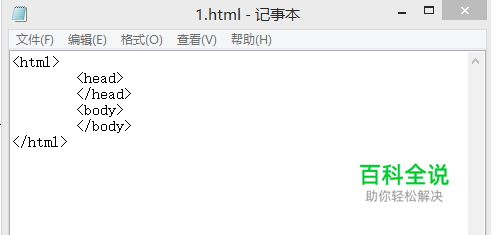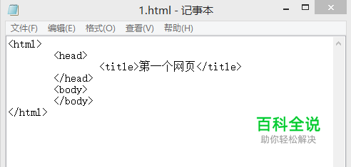 首先,我们新建一个文本文件,命名为1.html。用文本编辑器(如记事本打开),输入html文件的三要素:<html><head><body>标签,每种标签成对出现。如图: