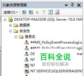 假设要登录的用户是test。确认密码无误之后,仍然登录失败应该是用户权限的问题。如下图,找到展开根节点-安全性-登录名,在你新建的用户上右击,选择属性。选项页中,切换到状态选项页,确保授予“允许连接到数据库引擎”和”登录“是启用的。