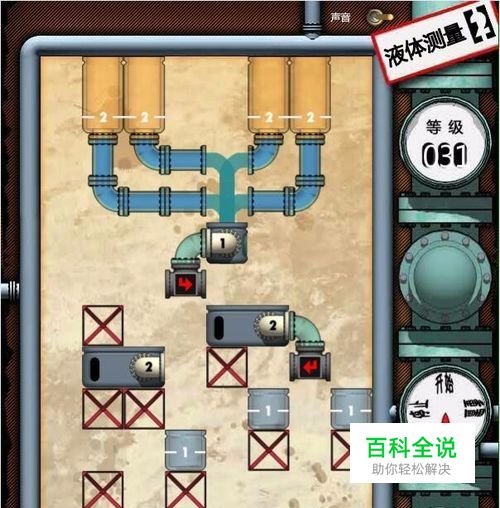液体测量是一款动脑游戏。游戏中玩家需要通过选择特定的水箱装满水才能过关