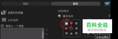双击覆叠轨中的图片素材,打开素材属性面板。我们可以看到用于控制运动方式的方向键。左边的方向键为素材进入方式;右边的方向键为素材移出方式。如果左侧点击右下箭头,右侧点击右箭头,则素材就会从左上进入,从右侧退出。