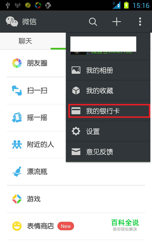 打开微信,找到我的银行卡