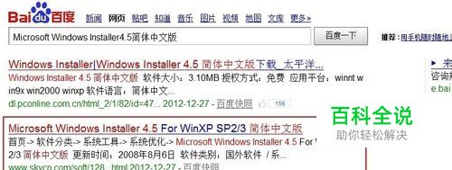 上网搜索并下载 "Microsoft Windows Installer4.5简体中文版"。然后运行安装程序,安装过程很简单,直接单击下一步即可完成。