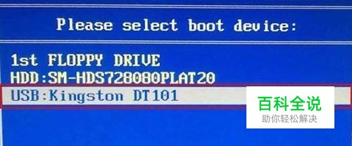 2、在启动项选择界面,移动方向键进行选择,选择u盘所在的选项,按回车键确定进入,如下图所示: