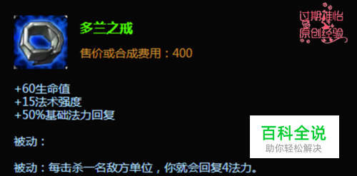远古巫灵泽拉斯的出门装备选择我们还是出多兰戒比较不错,这里主要是多兰戒可以增加我们的法力回复。所以可以增加我们的续航能力,而且还增加了60点的生命值,被动加上自己的被动法力回复还是非常不错的。