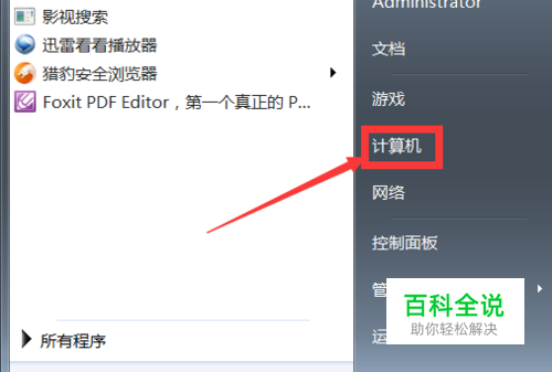 方法一:打开win7系统的开始菜单,然后打开如图所示的“计算机”选项