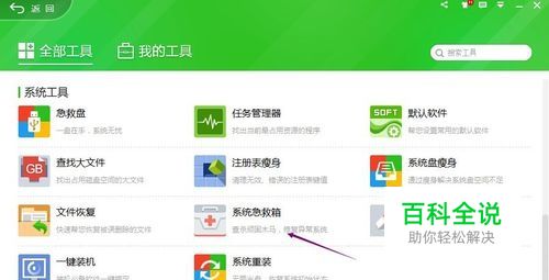 在“全部工具”栏找到“系统急救箱”添加。添加完成后会在“我的工具”栏显示。