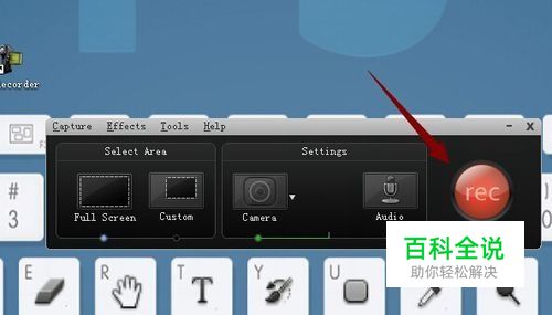 点击录制工具条最左边的full screen 可以让录制框全屏显示