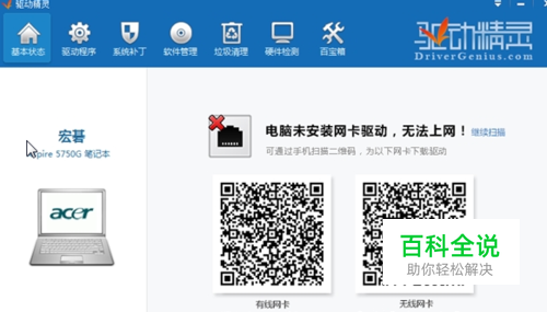 重装完系统后,我们打开电脑,通常里面什么软件都没有。第一步:安装驱动软件,安装完后,启动软件,软件会检测你的电脑,然后告诉你电脑没有网卡,此时你只需要一键安装把网卡装上即可。