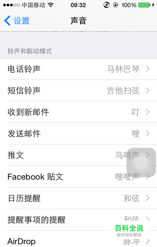 点击“声音”选项进入声音设置,把铃声和提醒下面的声音条拉到最左边同样可以达到静音效果。