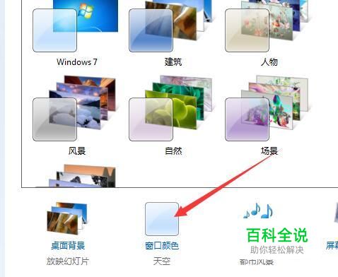 弹出个性化窗口,在窗口的最底下点击窗口颜色按钮。