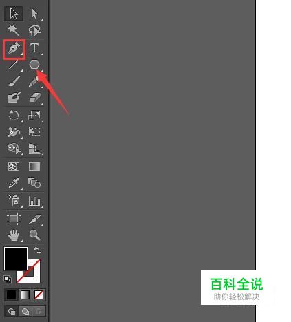 打开AI这款软件,然后在工具箱内找到钢笔工具,如图所示: