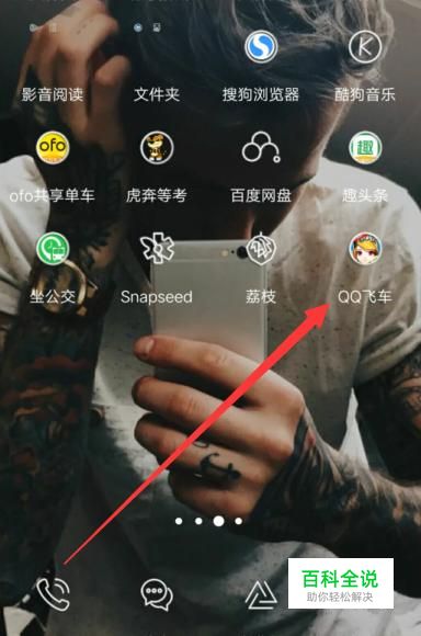 打开手机,找到QQ飞车,点击并进入,如图所示。