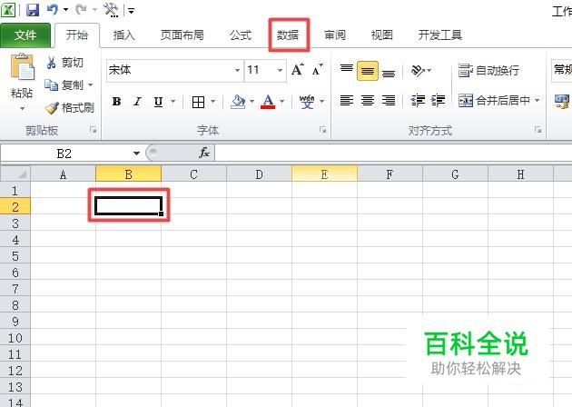 首先,我们打开我们电脑上面的excel,然后我们任意选中一个单元格,之后我们点击工具栏中的数据;
