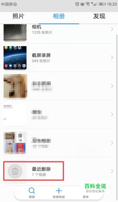 进入图库后,我们下拉界面到最下方,然后我们点击最近删除;