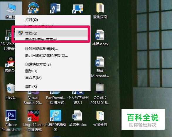在打开电脑后先让电脑运行稳定,然后右击此电脑(在有些电脑中显示的是【我的电脑】),在弹出框中选择【管理】,然后会弹出计算机管理窗口。