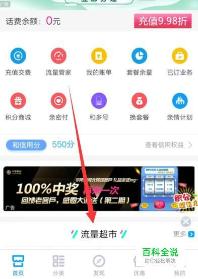 进入之后,点击“流量超市”,进入下一页面,如图所示。