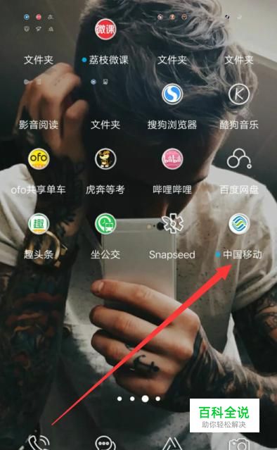 打开手机,找到中国移动客户端,点击并进入,如图所示。