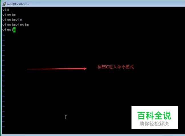 编辑完内容以后输入ESC键退出编辑模式,如下图所示