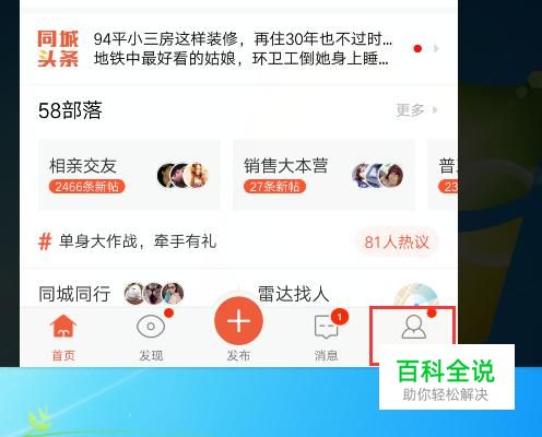 在手机上打开58同城APP会看到个人中心的功能,如图