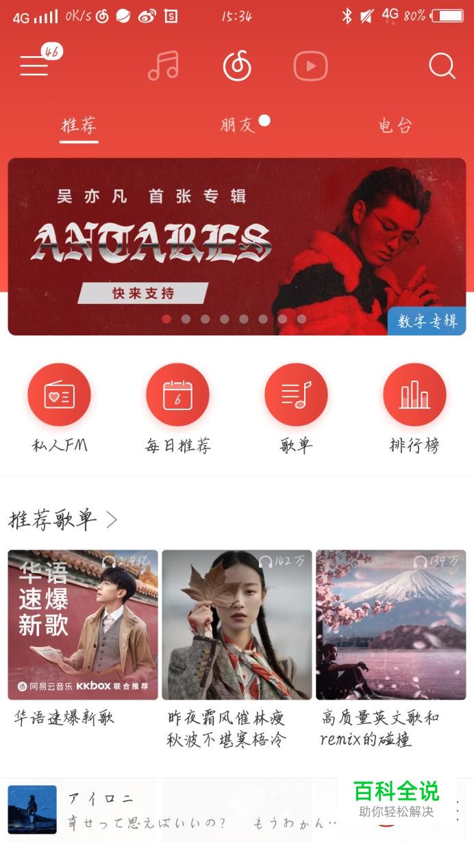 首先打开网易云这个app,如图1所示。进入网易云后会出现一个新的界面,如图2所示。