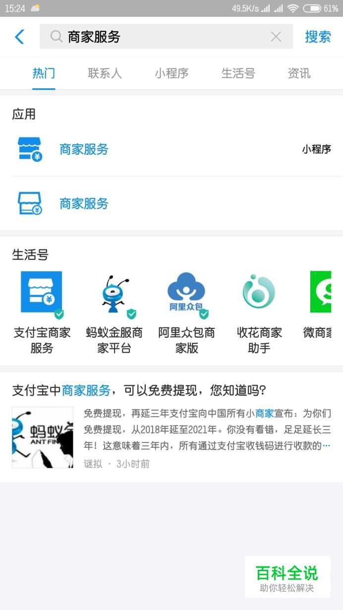 点击第一条结果即可进入商家服务,点击右上角的图标。