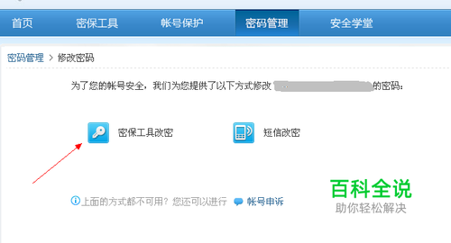 进入修改页面后,我们可以通过两种方法修改密码 第一种就是 密保工具改密,