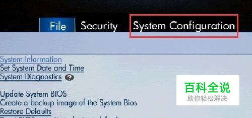 首先开机马上连续按F10或者按ESC后在按F10进入BIOS界面,并且左右移动或者鼠标点击System Configurations项目。