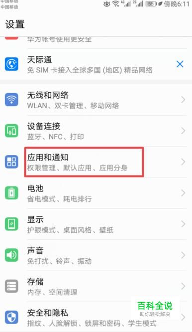 进入设置后,我们点击应用和通知;