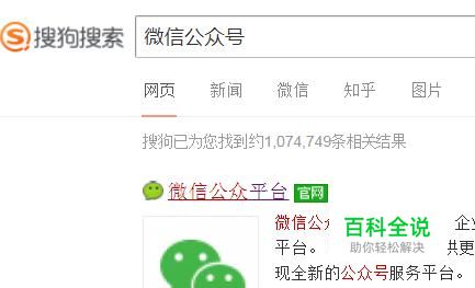 首先,在搜狗浏览器中输入微信公众号并点击回车键,如下图所示。