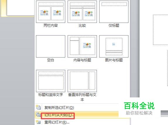 弹出的界面,我们点击幻灯片(从大纲);