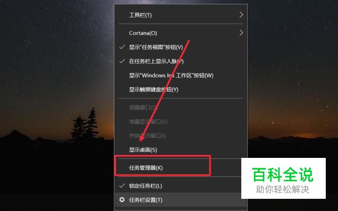 右击底部任务栏,点击任务管理器,或者键盘按下k键。