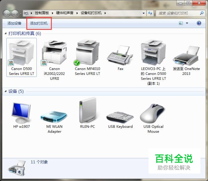 该打印机就会被添加到自己的电脑中了。注:通常情况下还需要安装该型号打印机的驱动软件。