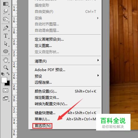 点击编辑选项在其下拉列表里找到首选项,如图所示: