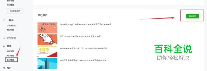 点击微信公众号素材管理中的新建图文消息或者是群发功能里面的新建图文消息,也可以在原有的图文消息中选择编辑图文插入音乐。