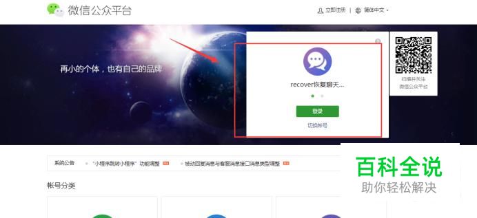 打开微信公众号登陆页面,登陆你的微信公众号。