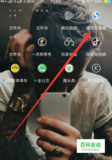 打开手机,找到搜狗浏览器,点击并进入,如图所示。