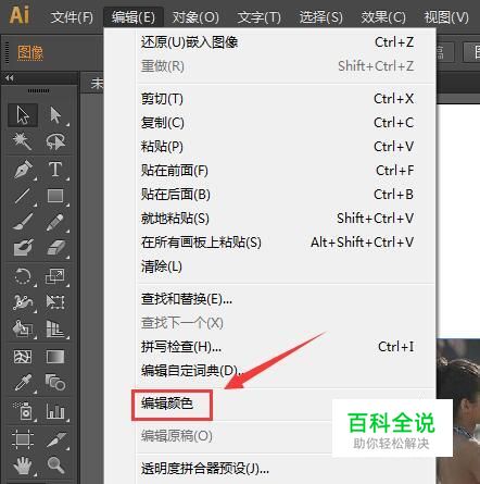 点击置入选项将图片置入之后,再在编辑菜单里找到编辑颜色选项,如图所示: