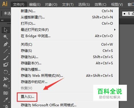 打开AI之后在文件菜单哪里找到置入选项,如图所示: