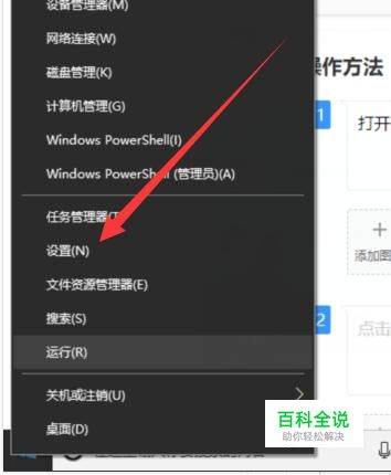 打开电脑,右击Windows按键,选择设置,如图所示。