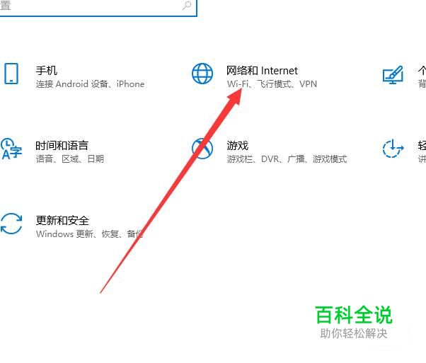 进入之后,点击“网络和Internet”,进入下一页面,如图所示。