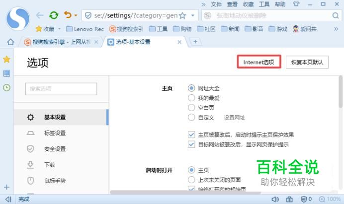 弹出的界面,我们点击Internet选项;