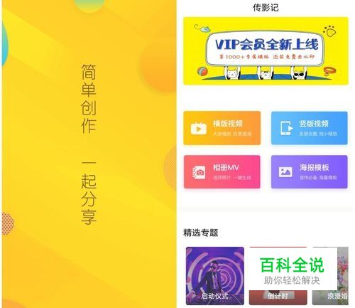 首先我们找到传影记,打开首页,可以看到分类非常简洁。我们找到我们需要的婚礼类,因为是要能播放在大屏幕上的,所以我们在制作视频时一定要选择横版视频,支持大屏幕播放的。