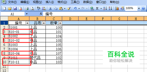 我们将辅助列进行升序或者降序,然后就可以发现,同型号的产品已经被排到一起,这样,就基本上达到了我们的要求,我们可以再选择其他的筛选条件,单独将这些特殊的数据筛选出来,方便我们做其它的操作。