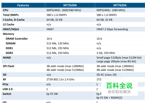 MT7620系列常见的有两款,MT7620A和MT7620N。虽然这里我着重介绍MT7620A,但是作为同系列产品,我也简单介绍一下。具体区别看下图。