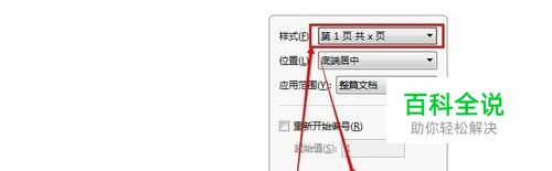 点击“插入页码”,样式选“第1页 共x页”,点击“确定”。