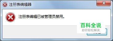 但是点击确定之后,会弹出:注册表编辑已被管理员禁用。的出错提示。